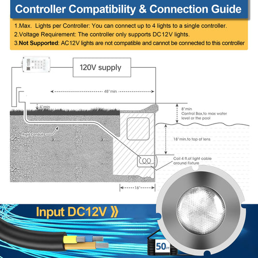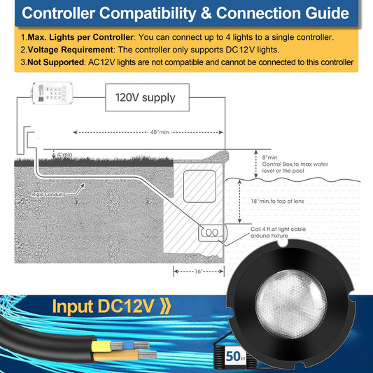 Pool Lights for Inground Pools, 10" LED RGBW Color‑Changing Pool Lights, IP68 Waterproof, AC 120V, 50 ft Cord, Controller, App & Remote Control, Fits 10" Pool Niche