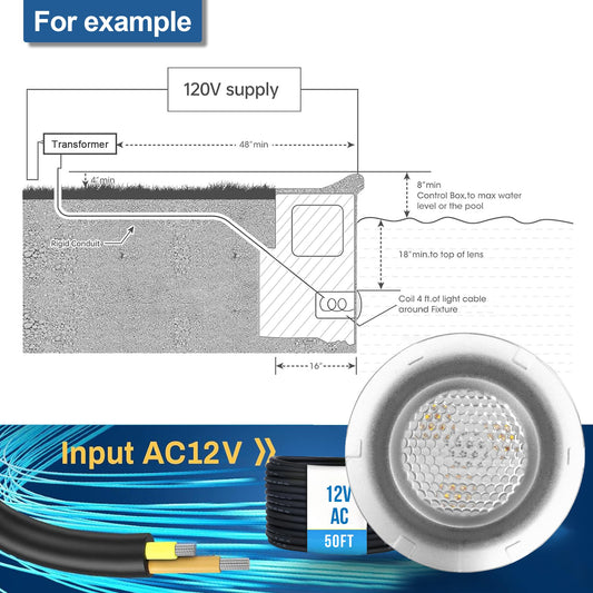 Pool Lights for Inground Pool, 6 Inch LED RGBW Color Changing Inground Pool and Spa Light, IP68 Waterproof Pool Lights for Above Ground Pools, 12V AC, 50ft Cord, Remote Control, Pool Niche Included