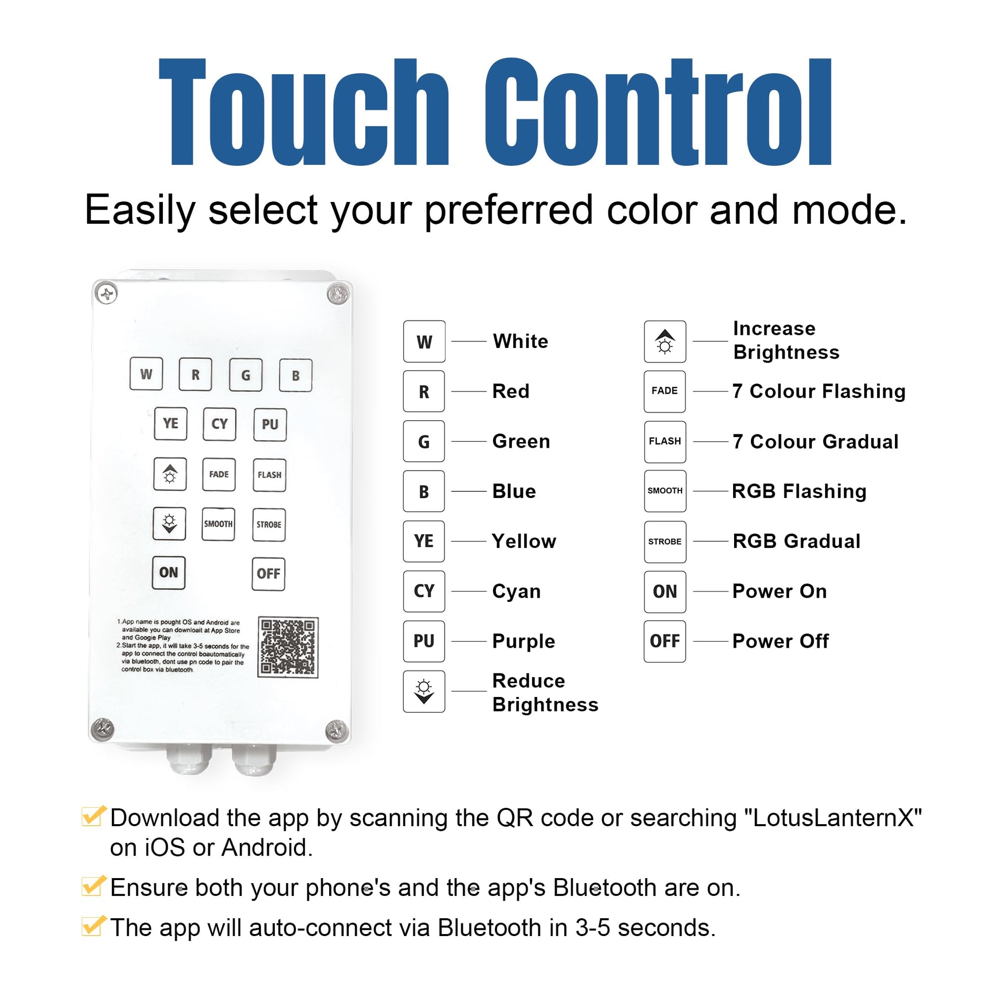 - Our pool light provide three seamless control options: a user-friendly app, a convenient remote, and a robust manual controller—backed by an integrated outdoor controller with a dedicated signal receiver to eliminate signal loss in water or metal environments. You can connect up to four lights per controller, which supports only DC 12 V fixtures; AC 12 V lights are not compatible.